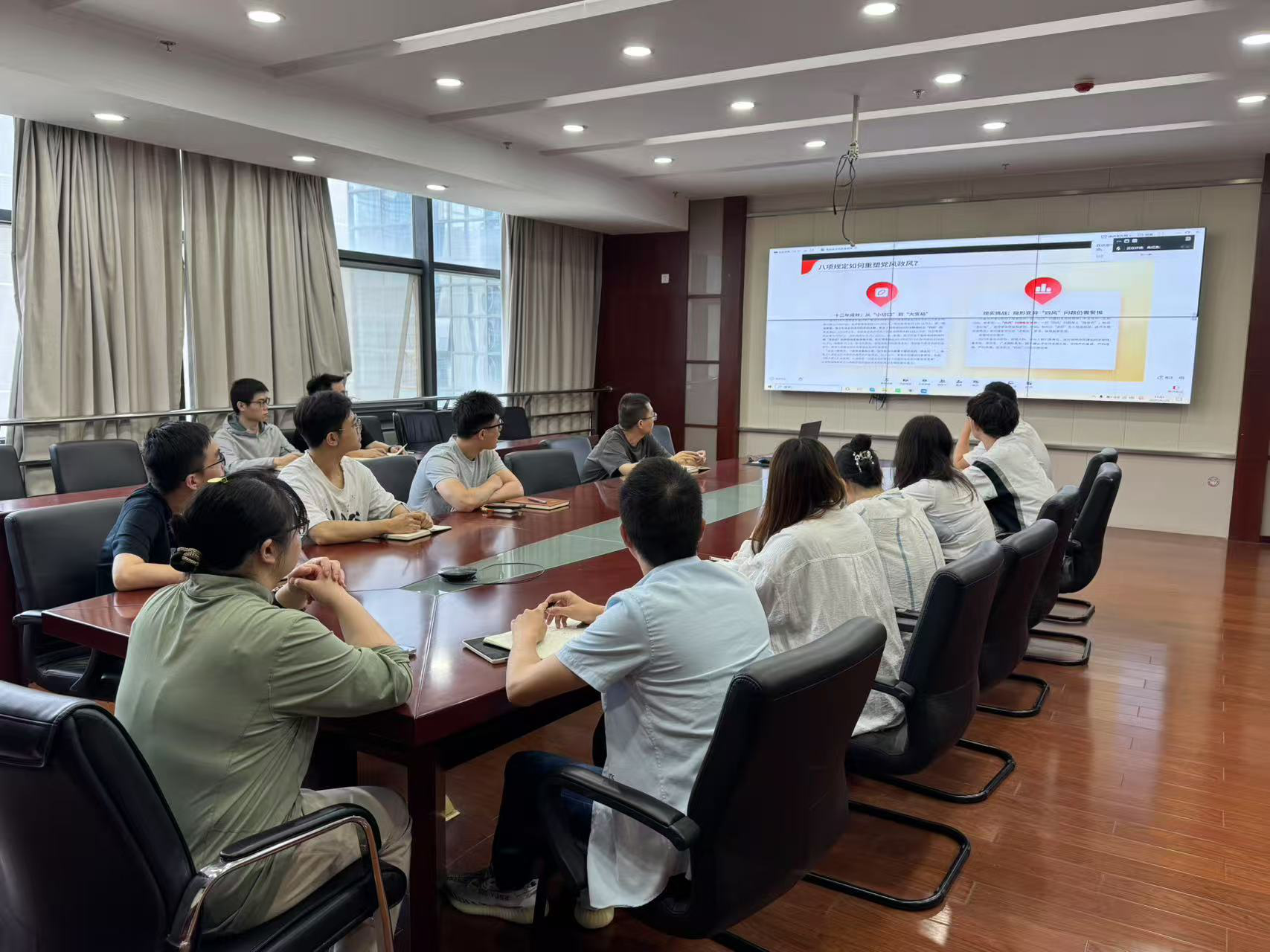 青年宣講凝共識(shí),開門教育促轉(zhuǎn)變。在公司黨委組織部和公司團(tuán)委統(tǒng)一部署下,機(jī)關(guān)團(tuán)委、鋼鐵院團(tuán)委、建筑院團(tuán)委、水環(huán)境團(tuán)總支等多家直屬團(tuán)組織創(chuàng)新活動(dòng)形式,邀請(qǐng)公司年輕干部結(jié)合自身崗位實(shí)踐講授主題團(tuán)課,深入闡釋中央八項(xiàng)規(guī)定精神的核心要義,參與研討交流。宣講圍繞“作風(fēng)建設(shè)常抓不懈”“密切聯(lián)系群眾”“反對(duì)形式主義官僚主義”等主題,號(hào)召青年員工將紀(jì)律要求轉(zhuǎn)化為履職效能,既要胸懷干事創(chuàng)業(yè)的激情,更要堅(jiān)守懷德自重的品格,在精簡(jiǎn)流程、提升服務(wù)等細(xì)節(jié)中彰顯青春擔(dān)當(dāng)。